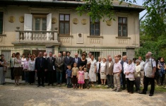 Tiszteletadás és koszorúzás a "Deák széke" új helyre kerülése alkalmából a Klauzál villa előtt 2007. április 29-én.