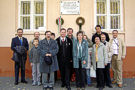 „A legnagyobb magyar geológus születésének 180. évfordulóján” tartott Szabó József-emlékülés csoportképe a Szabó-ház falán állított Klauzál-emléktábla alatt (2002. április 5. ) |