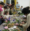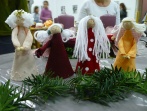 Megható volt, ahogy a kisebb gyerekek is kivették a részüket, mézeskalács-szívet festegettek, méhviasz-gyertyát tekergettek, a nagyobbak már a komolyabb feladatokat vállalták, az adventi koszorúkat díszítették az anyukák irányításával, de volt, aki a diókat törte ügyesen, hogy a diófelekbe lehessen önteni az olvasztott méhviaszt gyertyának. Az anyukák, meg a nagyobb lányok tobozmanókat, csodás angyalkákat készítettek, egyszóval mindenki lelkesen igyekezett valami szépségeset alkotni.
