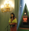 A díszteremben és a refektóriumban az ünnepi időszakhoz szervesen illeszkedő kiállításban: „Öltöztessük Máriát díszbe!” - Szilágyi Júlia és Sárváry Katalin textilművészek keretbe zárt képeiben és öltöztetős Mária-szobraiban gyönyörködhettünk.