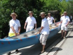 Ezenközben a vízitelepen kiválasztott hajónk oldalára felkerült társaságunk neve. Dereglyénk egy 8 személyes ún. ülőkenu, melyet Rátkai János olimpiai ezüstérmes kajakosunk, a Rómaifürdő SE elnöke a szervező bizottság tagjaként bocsátott egyesületünk vállalkozó kedvű flottillásai részére, Szilágyi Zsolt őrnagy közbenjárására, aki a Magyar Honvédség 1. Honvéd Tűzszerész és Hadihajós Zászlóaljának hadihajós parancsnok helyettese.