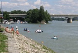 És ismét a vasúti híd következett, majd az utolsó métereken még remek hajrával megelőztek egy másik egységet és elégedett mosollyal szálltak ki a hajóból a Római-parton.
