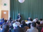 Délután 3 órakor – miután az egyes közösségek kis kék-sárga zászlócskákkal jelölték a kerület egy nagyobb térképén az általuk takarított területet – vette kezdetét az együttlét a baráti körök elnöknőjének, Horváthné Fűkő Zsuzsának a bevezetőjével, aki a jelenlévők (köztük díszpolgárok) üdvözlése után meleg szavakkal köszönte meg a közönség soraiban ülő Szabolcs Attila polgármesternek és a kabinetvezető Bakos Erikának, illetve a szintén a teremben lévő önkormányzati képviselőknek a civil-napi program szervezésében nyújtott támogatásukat-segítségüket. És hangot adott a jóleső érzésnek, hogy a kerületi civilek a környezet tisztábbá, szebbé tételében összefogtak, reméljük nem csak egy napra, és reméljük, hogy példájuk követésre talál.