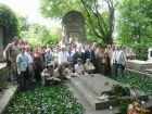 Kora délután a szegedi belvárosi temetőben folytattuk történelmi kirándulásunkat, ahol a megelőző emléksétánk során velünk tartó dr. Nagy Péter, a Szegedi Közéleti Kávéház törzstagja tartott rövid megnyitót, aki a 143 éve elhunyt Klauzál Gábor érdemeit hangsúlyozta. Ezt követően dr. Dobos Károly, a Klauzál Társaság elnöke beszélt a neves politikus névadójuk 1866-os temetéséről. Érdekes adalék, hogy ezen a gyászszertartáson jelen volt az alig ötvenezer lakosú Szeged lakóinak körülbelül a fele. Méltán mondhatjuk, hogy a tárgyalt korban Széchenyi István temetéséhez összehasonlítható léptékű esemény volt. Bartos Mihály, a Klauzál Gábor Társaság alapító tagja, a Budapesti Városvédő Egyesület Promontor-Tétény munkacsoportjának elnöke ismertette részletes alapossággal a Klauzál-sírt és annak szimbolikáját, valamint az állagmegóvás megoldási lehetőségeit. A koszorúzáson lerótták kegyeletüket a Klauzál nevét egykor viselt szegedi tanintézmény (a mai Radnóti, az egykori Klauzál Gimnázium) öregdiákjai és tanárai.