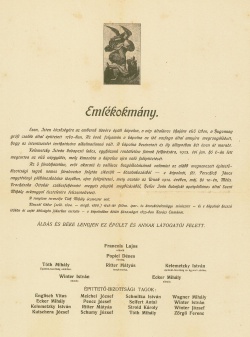 (1879-1958†) (1874-1946†) (1901-1978†) (1904-1982†) A Schumy-család tervei között szerepel, hogy az 1914. évi (templom)Építtető Bizottság tagjainak emlékét őrző, a kápolna bejárati ajtaja melletti belső falon található márványtáblák közé visszahelyezze Schumy József 1956-ban eltűnt feliratát. |