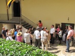 A várudvaron kezdte vezetését, a vár történetének rövid ismertetésével, itt rögtön az első pesti Lánchíd egyik öntöttvas darabját is láthattuk, az Andrássyak közeli dernői vasgyárában készültek ugyanis a Lánchíd kereszttartói.