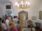 Láttuk még kiállítva Andrássy (született Hablawetz) Franciska grófnő (1838-1902†), szecessziós halotti hintóját, a kápolnában a Krasznahorkai Szűz Máriának elnevezett fekete Madonna képét és az Andrássy- és Pálffy-család halotti címerét, a kriptában pedig sok-sok temetési emlékszalag között egy budafoki vonatkozást, Törley Antal emlékszalagját is.