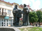 A Városháza csaknem 100 éves, szecessziós stílusú, impozáns épület. A tér túloldalán a 3. számú házon emléktábla jelöli, hogy valaha itt állt a sóház épülete, ahol 1844-ben Munkácsy Mihály, a magyar festészet kiemelkedő alakja–Lieb Mihály néven –meglátta a napvilágot. A téren elhaladtunk Cirill és Metód szobra mellett és megálltunk a kéményseprő szobránál. Itt a turisták többségéhez hasonlóan fényképeket csináltunk a szerencsét hozó „Berti bácsival”. /Bár nálunk a szobor nem mindenkinek hozott szerencsét, egy útitársunk kissé hosszabban csodálta a műalkotást, így lemaradt csoportunktól és csak a busznál találkoztunk ismét./