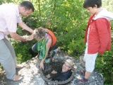 A következő állomás Felsőgereben volt, ahol az Árpád-vonal egy részét nézhettük meg. A Magyar Királyi Honvédség 1939-43 között Árpád-vonal néven védelmi vonalat épített ki a Kárpátokban a felvidéki Orosz-hágótól az Ojtozi-szorosig. A Kárpátok domborzati viszonyait igyekeztek kihasználni az ország védelmére, minden járható völgyben bunkereket építettek, ahonnan tűz alá lehetett venni az utakat. Az Árpád-vonal felsőgerebeni alagútrendszerének, embermagasságú járatainak nagy része épen maradt. Ezt nemrég egy magánember vette meg, a járatokat kivilágította, és látogathatóvá tette a nagyközönség számára, így vezetéssel, ukrán magyarázattal, Berghauer Sándor fordításával mi is megnézhettük. Az egyik járatban képes kiállítást is láthattunk a 2. világháború idejéről, középen egymás mellett Horthy Miklós és Leonyid Brezsnyev arcképével. Szomorú elképzelni a hatalmas munkát, amivel e bunkerrendszert létrehozták, s tudni, hogy mindez hiábavaló erőfeszítés volt. Én a kijövetelnél is az erőfeszítés nélküli utat választottam, a többség a nehezített változatot, s mivel a szabadba kijutásukkor lelkesen meséltek élményeikről, talán néhányan megosztják velünk kalandjaikat.
