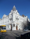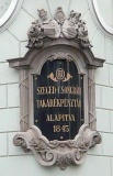 A Szeged-Csongrádi Takarékpénztár Baumhorn Lipót által tervezett székháza és az épület elkészültekor, 1906-ban felavatott fekete gránit tábla (a szerző felvétele) |