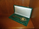 A könyvtár megtekintése után megnéztük az elnökség előszobájában berendezett kiállítást, mely a Fővárosi Törvényszék régi eszközeiből ad ízelítőt. A vitrinekben megtekinthető volt többek között az épület eredeti terveinek részletei, díszdobozában az Igazságügyi Minisztérium kulcsa, egy a korabeli állapotokat szemléletesen bemutató, kétnyelvű figyelmeztető tábla („A padlóra vagy szanaszét való köpködés tilos!”), igazi békeidők béli írógépek, bélyegzők, végül az egyik üvegvitrin tetején egy bronz fejszobor, felirata szerint dr. Szücs Gábor László* (1895-1981), a Büntető Törvényszék elnökének portréja…