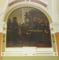 Kedves KGT-s Társak! Rövid visszapillantás a tegnapi, februári, márciusi hangulatú délutánra. Köszönet a Markó utca 25. alatti látogatásért a szervezőknek. A KÚRIA túloldali elhelyezkedése némi komplikációt okozott a helyszín beazonosításánál, de megtaláltuk a kellő helyet. Az egyórás séta és látogatás a monstrum bírósági épületben emlékezetes marad. A fiatal jogász asszony a várakozás perceiben érdekes okfejtést tartott a három-négyszintű hierarchikus bírósági struktúráról és provokatív kíváncsiskodó kérdéseinket is ügyesen megválaszolta a szűkre szabott időben. A díszes tárgyalóterem méltóságteljes, egyszerű és tiszteletet parancsoló berendezése és bútorzata láttán erősebb igazságvágy fogja el az embert. A hat freskó a törvénykezés, igazságszolgáltatás változásának, fejlődési formáinak kommentárt igénylő láttatása is jó volt. Az ülésterem más-más pontjáról próbáltam, próbáltuk szemlélni a hatméteres magasságba festett körkép jelleget öltő külön képeket és megérezni az igazságteremtés és -hirdetés, az ítéletek fontosságát a múló időben. Első képen az ököljog, a bunkósbot, a nyers erőszak igazságszolgáltatása évezredekkel korábban (nem kizárható, hogy sok helyen máig hatóan). Második képen Könyves Kálmán királyunk jelenetei, ítéletei. Harmadik képen izzó parázsra állításos próbatétel.... Negyedik képen az igazságos Mátyás a jobbágyoknak szolgáltat igazságot. Ötödik képen ül Törvényt Verbőczi, hogy majd öt évszázadig teremtsen jogi kereteket az ország népének. A Hatodik képen látható Deák Ferenc, Szemere Bertalan, Eötvös József, Klauzál Gábor több társával egy asztal körül, akik az 1848-as törvényeket készítik elő, tudatosítva, hogy csak érvényes törvények (legitimáció?) alapján lehet majd igazságosabban törvénykezni. Jogteremtő munkájuk nyomán mondhatják majd el a költők, mai fogalommal a demokráciakeresés és jogérvényesítés igényének gyors kikiáltói, személyes vágyaikat, mit milliók akarnak: „ha majd a jognak asztalánál mind egyaránt foglal helyet, ha majd a bőség kosarából mind egyaránt vehet, akkor mondhatjuk, akkor mondhatjuk, hogy megálljunk, mert itt van már a Kánaán,de addig”…A hetedik meg mi vagyunk..?... és legyünk! Láncok nélkül mentünk be és láncok nélkül jöhettünk ki a Markóból, hogy aztán a Bartos Misi egyik Körúthoz közeli kedvenc söröző kocsmájában folytassuk a napot. Dobos Karcsi elnök úr gyors ütemben vezette az ülést a már leírtak, a tervezett napirend szerint (így is lehet). Bartos Misiék, és a CKT (Civil Koordinációs Tanács, elnöke Mészáros Péter tagtársunk, aki sokunkhoz hasonlóan több civil szervezetnek is tagja, vele együtt is vallom, hogy éljen a Varietas delectat (a változatosság gyönyörködtet) öröme és haszna) felhívása és ajánlása alapján a jelenlévő tizenegy tagtársunkból tízen támogattuk a Nagytétényi Kastély jelen értékeinek megtartására szóló felhívást. Ez az aktuális társasági közakaratnak is tekinthető. Ritkán fordul elő, hogy nyolc klauzálos együtt villamosozza körbe fél Budapestet. A négyes és a negyvenhetes villamos este hét után már elviselhető tömeget szállít és alig egy óra alatt megrázkódtatások nélkül elértük célunkat és nyolckor már a Városház térről ment mindenki felüdülve, vélhetően hazafelé. Március 15-ére a KGT tagsága és az érdeklődők március 14-én pénteken délután öt órától tart emlékezést a KLAUZÁL szobornál. Jöjjünk el, menjünk el minél többen! Kossuth, Klauzál, Deák, Széchenyi nemzedéke is sok-sok vitával és hihetetlen energiával vetette bele magát az ország függetlenségének, szabadságának, az ott élő emberek jogegyenlőségének küzdelmeibe. Petőfiék, Vörösmartiék, Jókaiék, Aranyék és még sok százan az írástudók és kardforgatók közül harcoltak az örök magyar szabadságért, ahogy azt már Rákóczi is üzente PRO PATRIA et LIBERTATE. Tollal és karddal, szóval és tettekkel. VIVAT KLAUZÁL! Üdvözlettel Janzsó János 2014. február 28. |