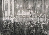 ![]() Széchenyi gyászravatala a pesti belvárosi templomban (1860. április 30.) |