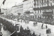 Temetési gyászmenet indulása a Nyugati pályaudvartól | Temetési gyászmenet a Nyugati pályaudvartól a Nemzeti Múzeumig (1894. március 30.) |