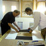A berendezést ezúttal két üvegvitrin és egy üveglappal letakart asztal egészítette ki, s végül helyükre kerültek a Klauzál-kiállítás anyagát képező könyvek, másolatok, érmék és egyéb relikviák. Képeink az előkészítők áldozatos munkájának állítanak emléket. Reméljük, az elkészült berendezés tartósnak bizonyul – bár sokak szerint egy bukva nyíló ablak, vagy valamely más módon megoldott szellőzés sokat segíthetne a belső légtér párátlanításában.