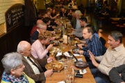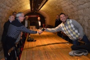 Társas-vacsoránk végén átmentünk az étterem Borpincéjébe, ahol a meghirdetett programunk szerint kisorsolásra került a Lics Pincészet által a „Klauzál 150 Emlékév” tiszteletére palackozott 150 üveg Szekszárdi Bikavér „megmaradt” utolsó 3+1 üveg Klauzál-bora. A +1 ü bort a jelenlévők egyhangúlag megszavazták az emlékév sikeresen megvalósult programjai létrejöttében oroszlánrészt vállalt Bartos Mihály tagtársunknak, aki szerényen megköszönve a nagylelkű ajándékot, azonmód azt is kisorsolásra ajánlotta...