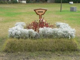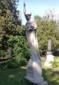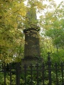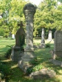 parcella első sorában ékeitől megfosztott, mohos kőfáklya mered a magasba. Itt