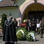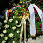 A sírok közt felhangzott a honvédség takarodó kürtjele, és a katonák díszlépésben vonultak el a virágokkal borított sír előtt.