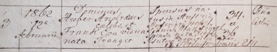 A házasuló felek: Ebner János házatlan zsellér (subinquilini), kapás szőlőmunkás (vinicola) és Kempf Mária – kiket a Klauzálékat is összeadó – Klauszrigler János nagytétényi plébános esketett, a tanúk: Lippauer János (1811-1875†, akivel kapcsolatban annyit jegyez a helytörténetünk, hogy az 1875 nyarán létesített kistétényi temető második eltemetettje volt...) házas zsellér (inquilinus domiciliatus) és Sumÿ (Schumy) Lipót (1831-?) tabáni születésű, szőlőműves (a Klauzál Gábor Társaság tagja, Kincses Katalin oldalági felmenője). Jegyezzük még le: Ebner János és Kempf Mária házasságából három gyermek született, egy fiú: József (1869-1889†, sírja szintén az 1988-ban felszámolt kistétényi temetőben volt egykoron…), és két leány (mindkettőjüket Klauszrigler atya tartotta a keresztvíz alá): Mária Annunciáta (1863-?), és Gertrúd (1866-1905†), aki 1893-ban ment férjhez Berger Péter (1869-?) napszámoshoz, későbbi kocsishoz, akitől négy gyermeke született, de ez már tényleg egy másik történet…