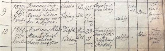 1852. november 10.: Kléh István és Szpivák Jozefa