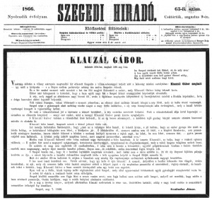 ![]() Klauzál Gábor gyászhíre a Szegedi Híradó címlapján |