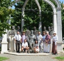 Kalocsára érkezve a Szabó-Simig ház előtt parkoltunk, ahol már várt minket Romsics Imre, a Viski Károly Múzeum igazgatója. Első utunk a Benedek György szobrászművész által készített Batthyány szoborcsoporthoz vezetett, ahol a korábbi nemzeti színű szalagjaink mellé Paulikné Ács Magdi segítségével feltettem az újabb szalagot Klauzál Gábor mellszobrához.