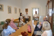Ezt követően átsétáltunk a szemközti Fényi Gyula Általános Iskola Belvárosi Általános Iskolájába, az egykori kisszeminárium épületébe. Az iskola „megálmodója” Kunszt József (1790-1866) kalocsai érsek (1854-1866) volt, akinek szobrát egyébként a Batthyány szoborcsoporthoz vezető úton megtekintettünk. Az épület utódja, Haynald Lajos (1816-1891) érsek (1867-1891) alatt készült el, 1880-ban adták át, kezdettől fogva iskolaként működött. 1907-ben a jezsuiták vették át a működtetést, ezután készült el a kalocsai „Sóhajok hídja”, amely a kisszeminárium épületét kötötte össze a szomszédos jezsuita kollégiummal. Az iskolában ismerhettük meg a Szabolcs által beharangozott meglepetést, a legújabb „klauzáli nyomozás gyümölcsét” Klauzál Emma iskolai éveiről számot adó iskolai anyakönyvet, bele lapozva megtudhattuk, hogy milyen tárgyakat tanult magyar és német nyelven milyen eredménnyel és kik voltak az osztálytársai 1863 és 1866 között, amíg az iskola padjait koptatta. Az anyakönyv megtalálása egy külön történet…
