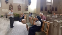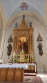 Megmutatta számunkra azt a helyet is, ahol Franz Mária Terézia (1825-1911) főnöknő nyugszik, aki Klauzál Emma idején az iskolát és a zárdát vezette. A templom főoltárát Kuppelwieser Lipót bécsi művész festette. A festmény főalakja Szent József, aki karján tartja a kisded Jézust, az onnan szétáradó fény megvilágítja a többi alakot. A román stílusú, háromszögben végződő oltár a bécsi Körner művész tervei alapján készült, a háromszög csúcsán Szűz Mária szobrával. A házfőnöknő ismertette a templom Mária mellékoltárának történetét is, amely Pámer László jezsuita atya „isteni sugallatára” 1945-ben készült el, miután megkereste ötletével a kalocsai érseket és a házfőnöknőt is, így a zárdatemplom a fatimai Boldogasszony kegyhelyévé válhatott (a képet Pámer atya útmutatásai alapján Szentgyörgyváry M. Pallládia iskolanővér festette).