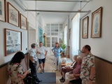 A templomlátogatás után következett kalocsai programunk utolsó állomása, a szomszédos technikum, az egykori Miasszonyunkról Nevezett szegémy Iskolanővérek Leányiskolája, melynek padlóját Klauzál Emma is koptatta. Az iskola igazgatója, Fekete Antal fogadott minket, aki felkísért az emeletre, ahol megmutatta Franz Mária Terézia főnöknő képét, a falakon emellett több régi képet is láthattunk az iskola régi életéből. Ismereteinket tovább bővítette Romsics Imre rövid beszédében.