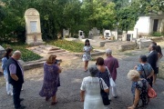 Ezután indultunk el a Belvárosi temetőbe, ahol Hódi Szabolcs bevezetője után megemlékeztem Klauzál és minisztertársai temetéséről (Klauzál Gábor halálának 156. évfordulóján »), a korabeli sajtóban leírt tudósítások szemlézésével. Ezt követően Szondi Ildikó és dr. Nagy Péter Szeged önkormányzatának és a Szegedi Közéleti Kávéház, Zsidákovits János és felesége, Mária Társaságunk képviseletében helyezték el koszorúikat Klauzál Gábor sírjánál, majd a sír előtt elkészült a közös fotó.