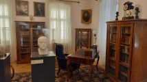 enteriőrben eredeti bútorai (íróasztala és könyvszekrényei, benne könyvtárának megmaradt