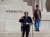 PS: Távozóban megszólítottam Hende Csabát, váltottunk néhány mondatot, kérdésére elmondtam neki is, hogy a Klauzál Gábor Társaság koszorúját hoztuk. Röviden invitált valamikorra a Parlamentbe. Aztán megszólítottam egy urat, akiről kölcsönös bemutatkozások után kiderült, hogy Kossuth Lajos famíliájából való Kossuth Gábor, Kőbányán él és a Kossuth Szövetség tagjaként volt jelen a megemlékezésen. Jól ismerte az egyesületünkkel kiváló kapcsolatot ápolt és programjainkon többször felszólalt és előadást is tartott, néhány éve elhunyt Gavlik Istvánt, a Kossuth Szövetség alapító elnökét.