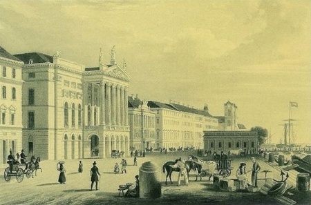A Redout épülete. (Joseph Kuwasseg színes litográfiája az 1840-es évek elejéről.)