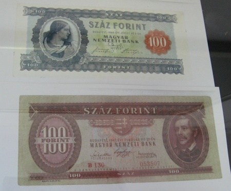 Az 1946. jún. 3-i és az 1947. jún. 27-i 100 Ft-os bankjegyek