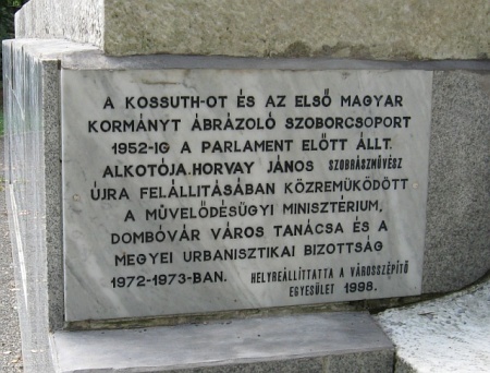 A Kossuth-szoborcsoport önállóan kiállított egykori reliefjének 1998-as hátoldali emléktáblája