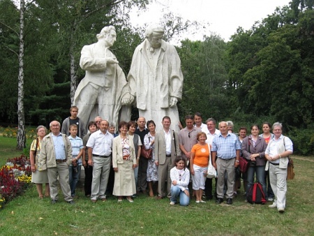 Csoportkép az Esterházy-Klauzál szoborpáros elött