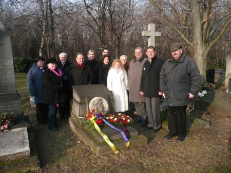 Emlékkép Henszlmann Imre megkoszorúzott sírjánál