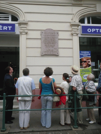 Klauzál emléktábla a Kis Virág cukrászda sarki épületén (Kelemen László utca)