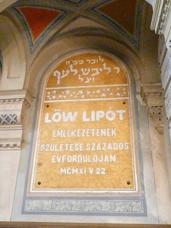 Löw Lipót főrabbi emléktáblája a zsinagógában