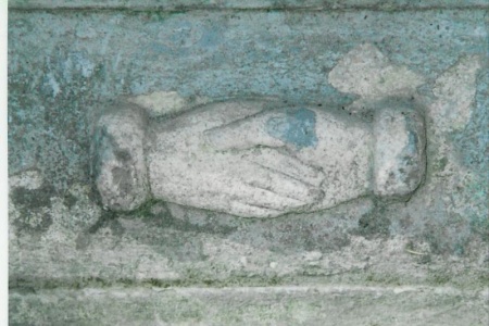 Egymásba fonódó kéz-ábrázolások a Budafok-felsővárosi temetőben