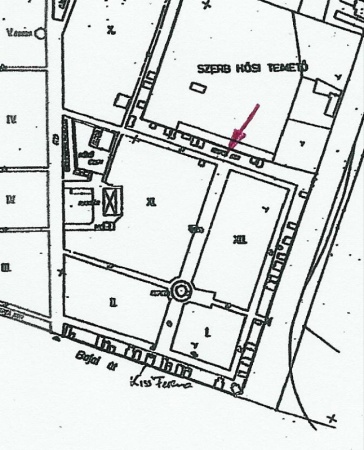 Térképrészlet a Klauzál-sírbolthely megjelölésével