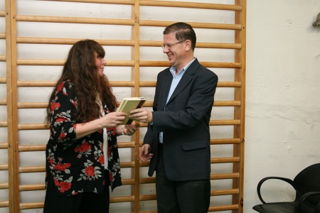 Pintér Zsuzsa könyvtáros és Dobos Károly elnök