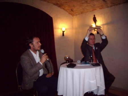 Majoros István szobrászművész és Dobos Károly elnök a Klauzál-szobor viasztervével