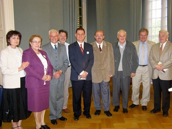 Csoportkép a záró program előadóival és hozzászólóival: Andrási Anna, Demeter Zsófia, Joó ernő, Csoma Zsigmond, Dobos Károly, Bartos Mihály, Lukács László, Prim György és Köteles György