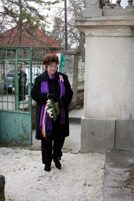 Szabóné Kircsfalusy Katalin, a Budatétényi Polgári Kör koszorújával