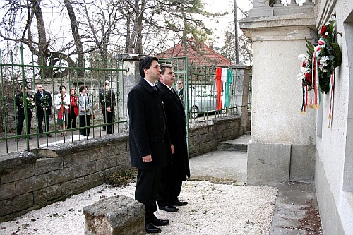 Németh Zoltán országgyűlési képviselő és Szabolcs Attila polgármester a kerület közös koszorújával