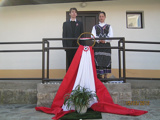 Az emléktúra végállomása és a megemlékezés helyszíne a kárászi Faluház