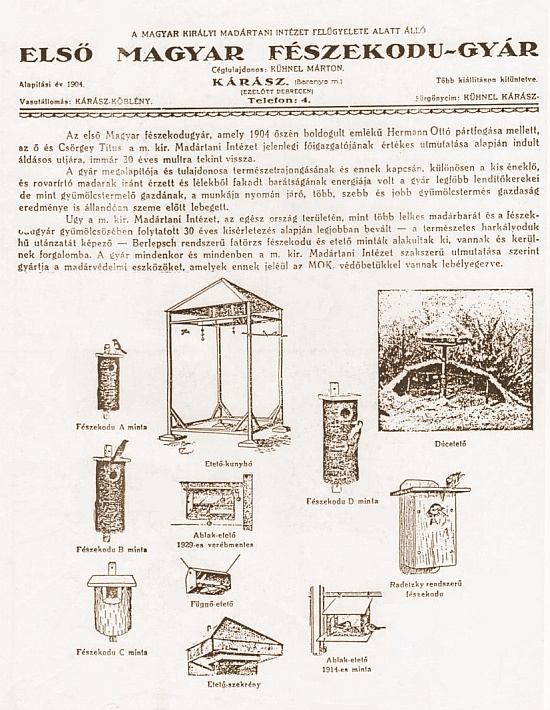 A Kühnel-féle Fészekodú-gyár termékmintái