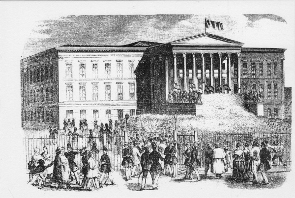 1848 március 15-e a Nemzeti Múzeum előtt