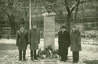 Csoportkép 1976. november 26-i avatási ünnepségen a szoborállítás kezdeményezőivel: